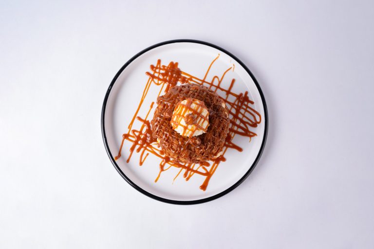 Pastacı Kreması Çilek Dilimleri, Kavrulmuş Fındık, Vanilyalı Dondurma, Tuzlu Karamel ile